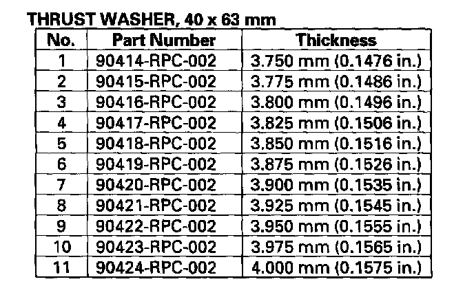 10. After replacing the thrust washer, make sure the clearance is within standard.