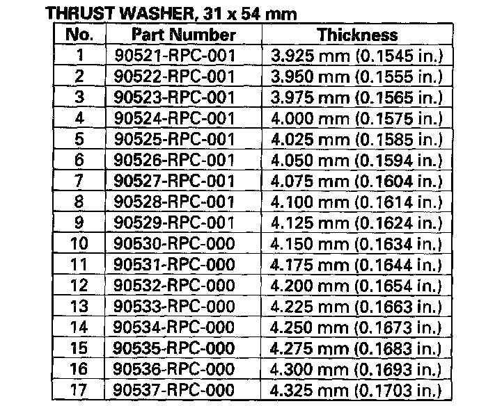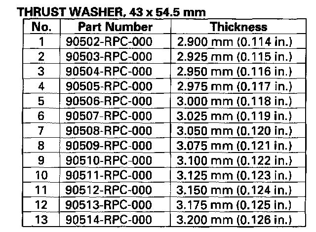 5. If the clearance is out of standard, remove the 43 x 54.5 mm thrust washer and measure its thickness.