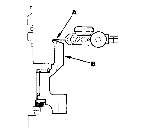 7. Be sure the special tool (A) is adjusted to have full contact with the return spring retainer (B).