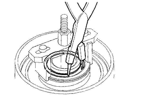 The sealing rings are synthetic resin with chamfered ends. Check the condition of the sealing rings, and replace them only if they are worn, distorted, or damaged.