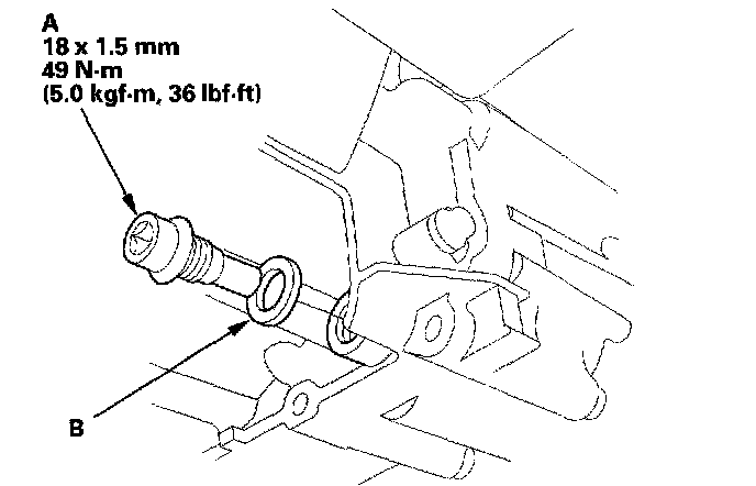 10. Remove the drain plug (A), and drain the automatic transmission fluid (ATF).