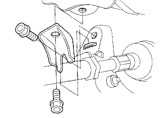 31. Remove the bolt (D) securing the power steering fluid line clamp bracket (E).