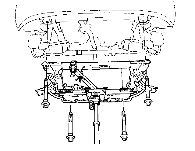 38. Remove the four bolts securing the front subframe, and lower the subframe.