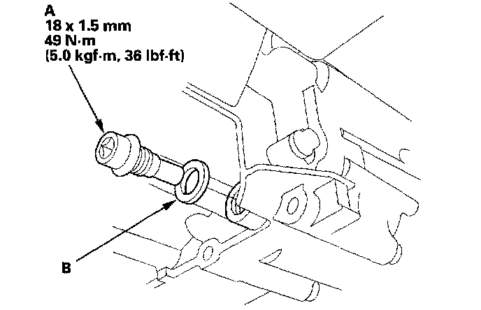 4. Reinstall the drain plug with a new sealing washer (B).