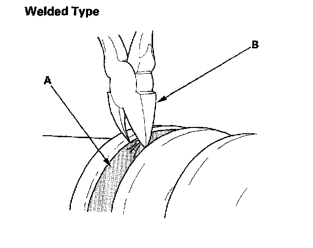 ^ If the boot band is welded type (A), cut the boot band (B).