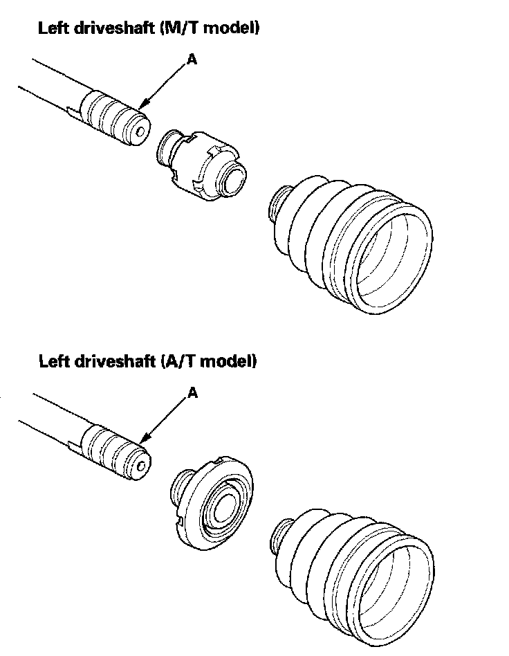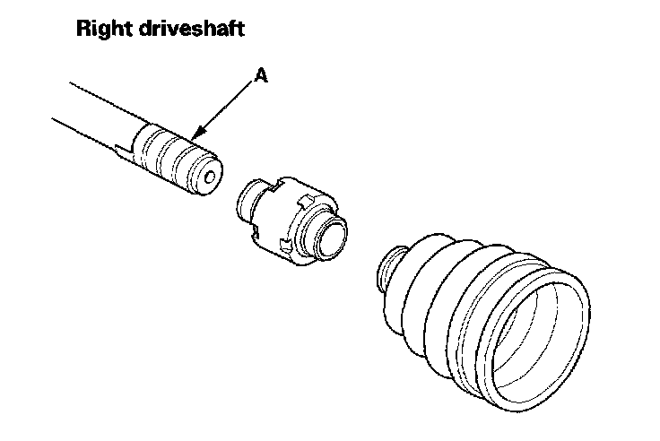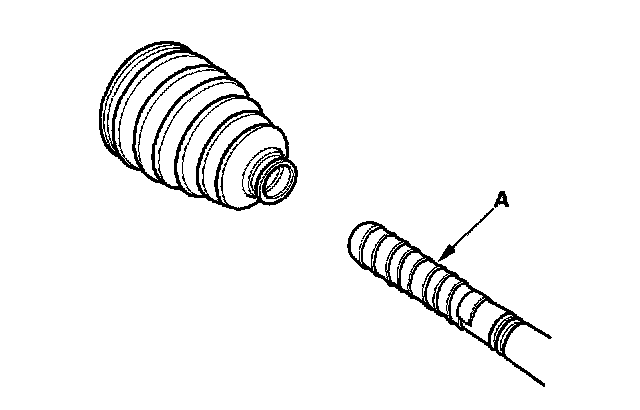 8. Wrap the splines on the driveshaft with vinyl tape (A) to prevent damage to the boot and dynamic damper.
