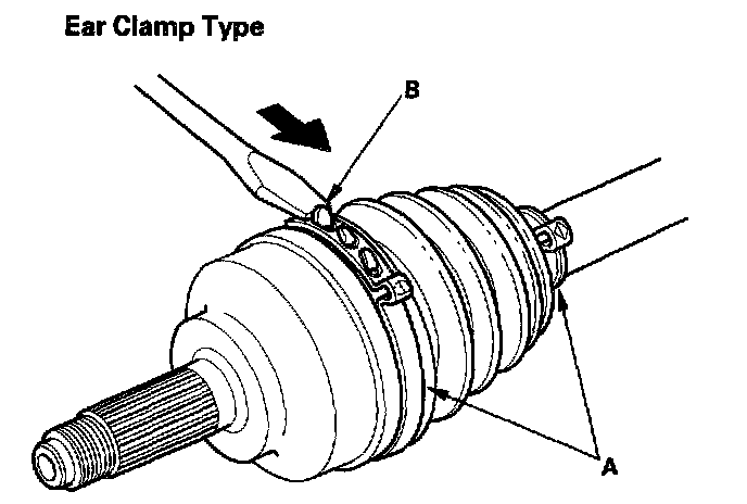 If the boot band is an ear clamp type (A), lift up the three tabs (B) with a screwdriver.