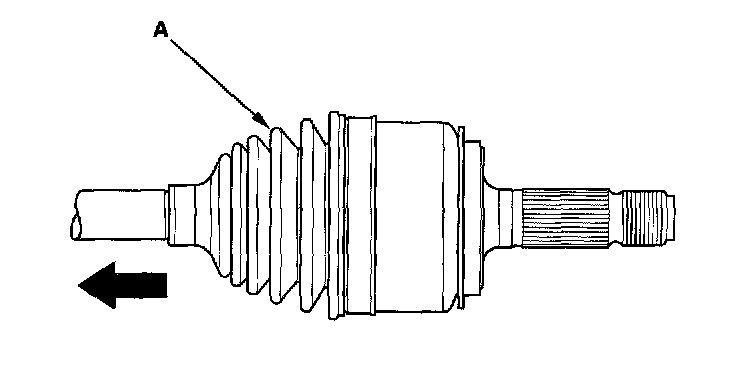 2. Slide the outboard boot (A) to the inboard joint side. Take care not to damage the boot.
