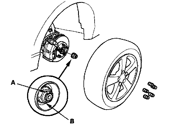 Right driveshaft (M/T only): Drive the inboard joint (A) off of the intermediate shaft with a drift and hammer. Remove the driveshaft as an assembly. Do not pull on the driveshaft (B), because the inboard joint may come apart. Draw the driveshaft straight out to avoid damaging the oil seal.