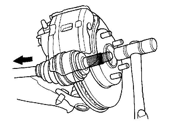 8. Pull the knuckle outward, and remove the driveshaft outboard joint from the front wheel hub.