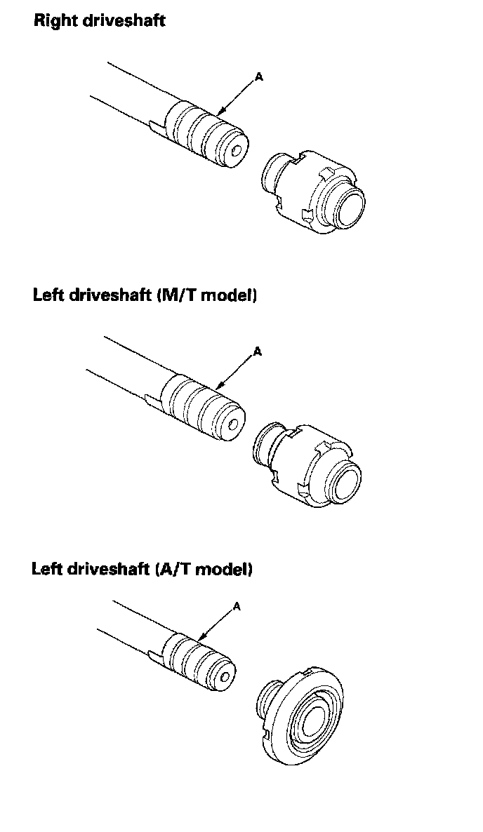3. Wrap the splines on the driveshaft with vinyl tape (A) to prevent damage to the dynamic damper.