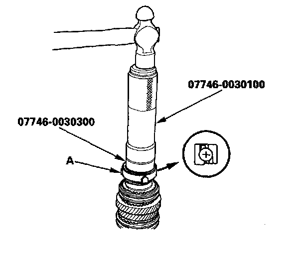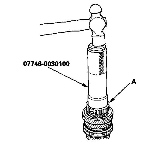 9. Install the 5th synchro hub (A) using the special tool.