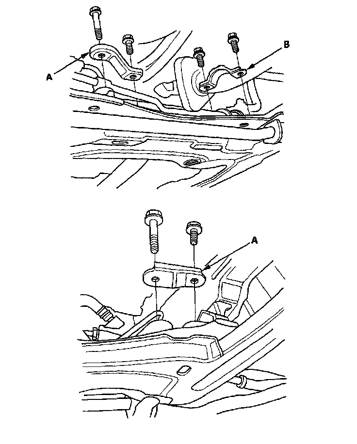 19. Remove the stiffner plates (A) and mounting bracket (B) from the steering gearbox.
