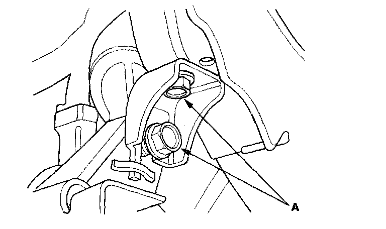 21. Remove the middle subframe mounting bolts (A).