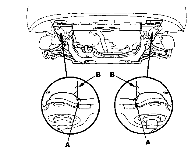 24. Note the reference marks (A) on both side of the subframe that line up with the body (B).