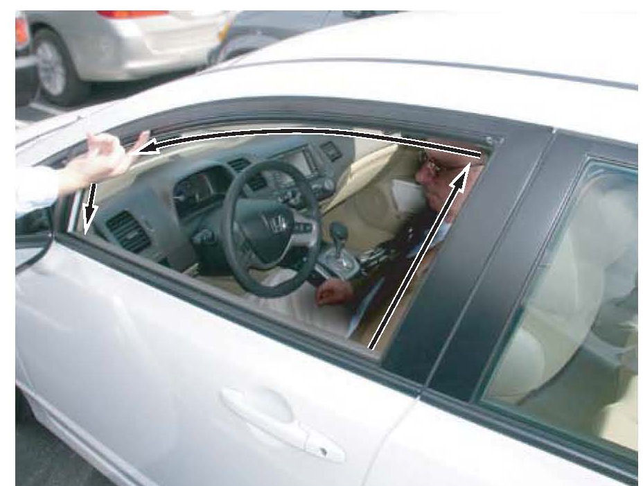 3. Replace the glass run channel. Lightly coat the inside of the glass run channel with Shin Etsu silicone grease.