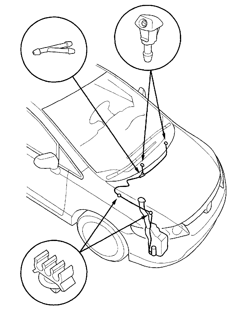 2. Remove the washer nozzles and clips, then remove the tubes.