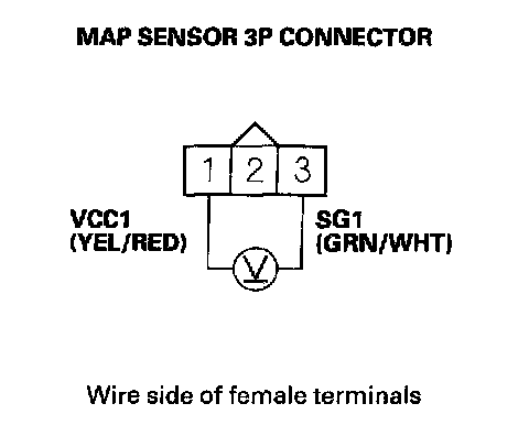 7. Measure voltage between MAP sensor 3P connector terminals No. 1 and No. 3.