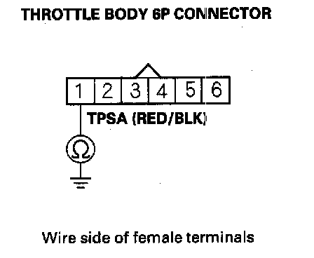 9. Check for continuity between throttle body 6P connector terminal No. 1 and body ground.