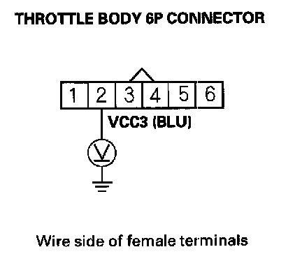 10. Measure voltage between throttle body 6P connector terminal No. 2 and body ground.