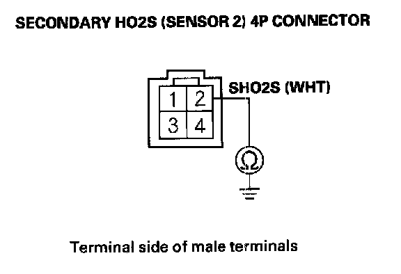 13. Check for continuity between secondary HO2S (Sensor 2) 4P connector terminal No. 2 and body ground.