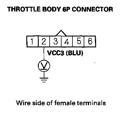 10. Measure voltage between throttle body 6P connector terminal No. 2 and body ground.