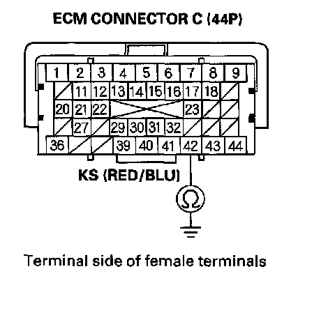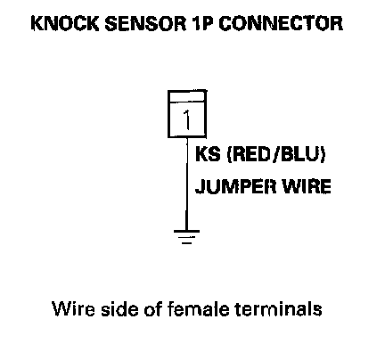 11. Connect the knock sensor 1P connector terminal to body ground with a jumper wire.
