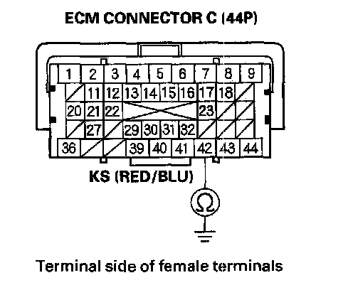 10. Check for continuity between ECM connector terminal C42 and body ground.