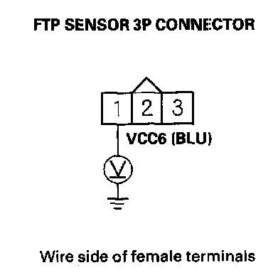 14. Measure voltage between FTP sensor 3P connector terminal No. 1 and body ground.
