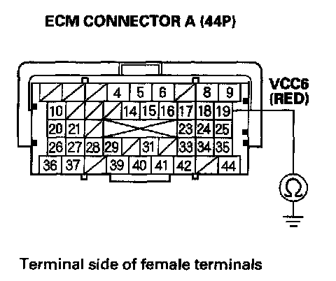 19. Check for continuity between ECM connector terminal A19 and body ground.