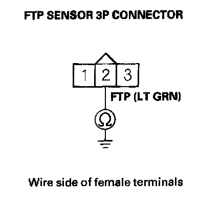 23. Check for continuity between FTP sensor 3P connector terminal No. 2 and body ground.