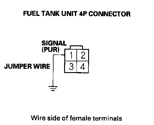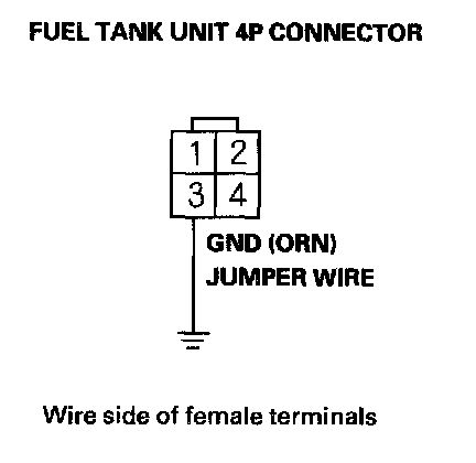12. Connect fuel tank unit 4P connector terminal No. 1 to body ground with a jumper wire.