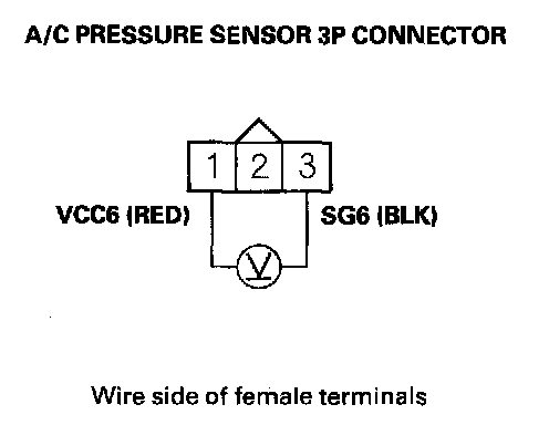 13. Measure voltage between A/C pressure sensor 3P connector terminals No. 1 and No. 3.