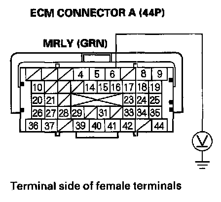 YES - Repair short in the wire between the ECM (A6) and PGM-FI main relay 1 C,then go to step 16.