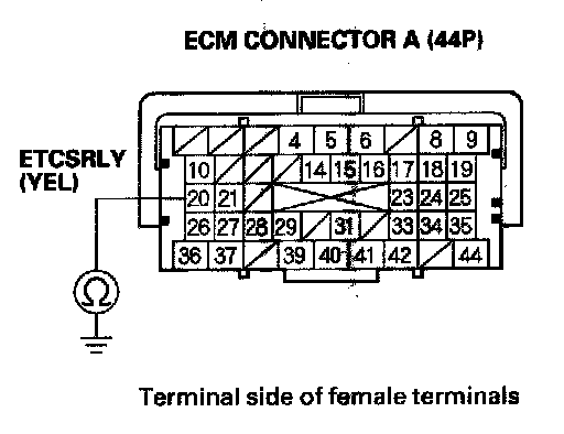 YES - Check for poor connections or loose terminals at the ETCS control relay (F) and the ECM. If the ECM was updated, substitute a known-good ECM, then recheck. If the ECM was substituted, go to step 1.