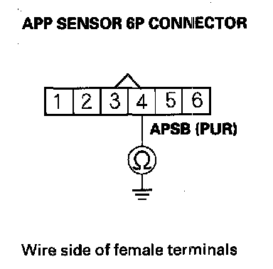 10. Check for continuity between APP sensor 6P connector terminal No. 4 and body ground.