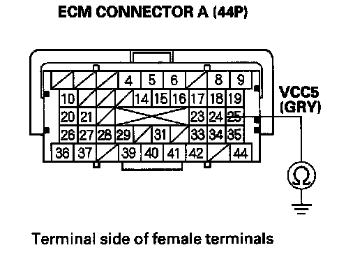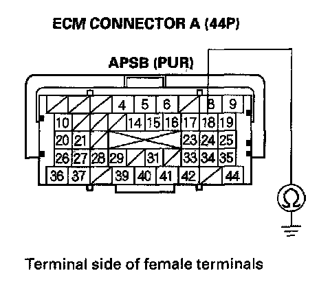 21. Check for continuity between ECM connector terminal A24 and body ground.