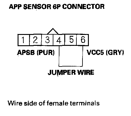 11. Connect APP sensor 6P connector terminal No. 4 to body ground with a jumper wire.
