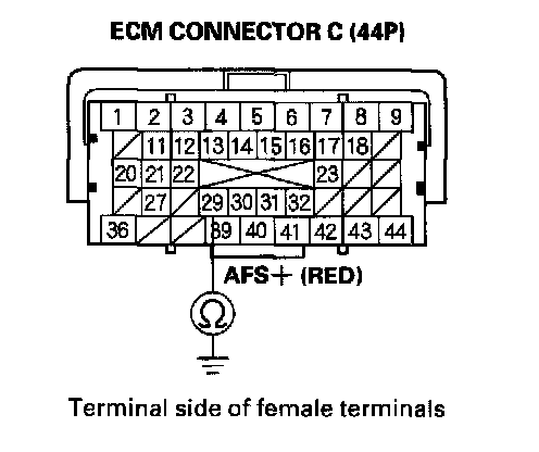 8. Check for continuity between ECM connector terminal C29 and body ground.
