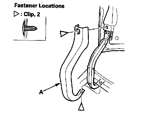 1. Remove the clips from both trunk lid hinge covers (A), then remove the covers.