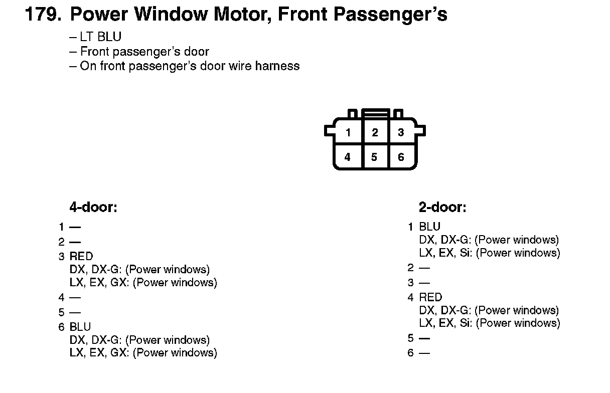 179. Power Window Motor, Front Passenger's:
