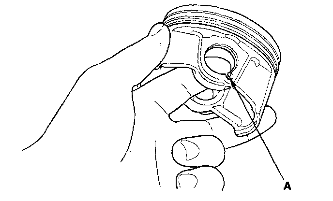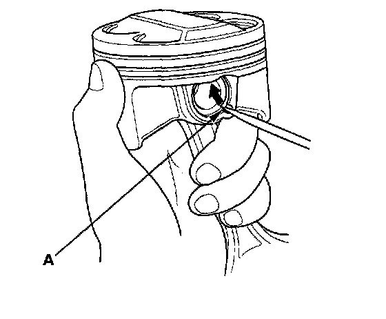 1. Install a piston pin snap ring (A).