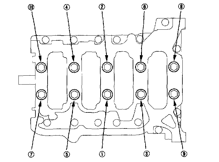 19. Tighten the bearing cap bolts, in sequence, to 29 Nm (3.0 kgf-m, 22 ft. lbs.).