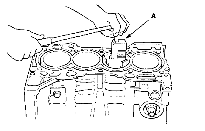 14. If you can feel a ridge of metal or hard carbon around the top of each cylinder, remove it with a ridge reamer (A). Follow the reamer manufacturer's instructions. If the ridge is not removed, it may damage the pistons as they are pushed out.