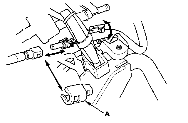 8. Remove the quick-connect fitting cover (A), then disconnect the fuel feed hose.
