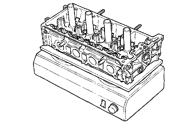 4. Use a hot plate or oven to evenly heat the cylinder head to 300°F (150°C). Monitor the temperature with a cooking thermometer. Do not get the head hotter than 300°F (150°C); excessive heat may loosen the valve seats.