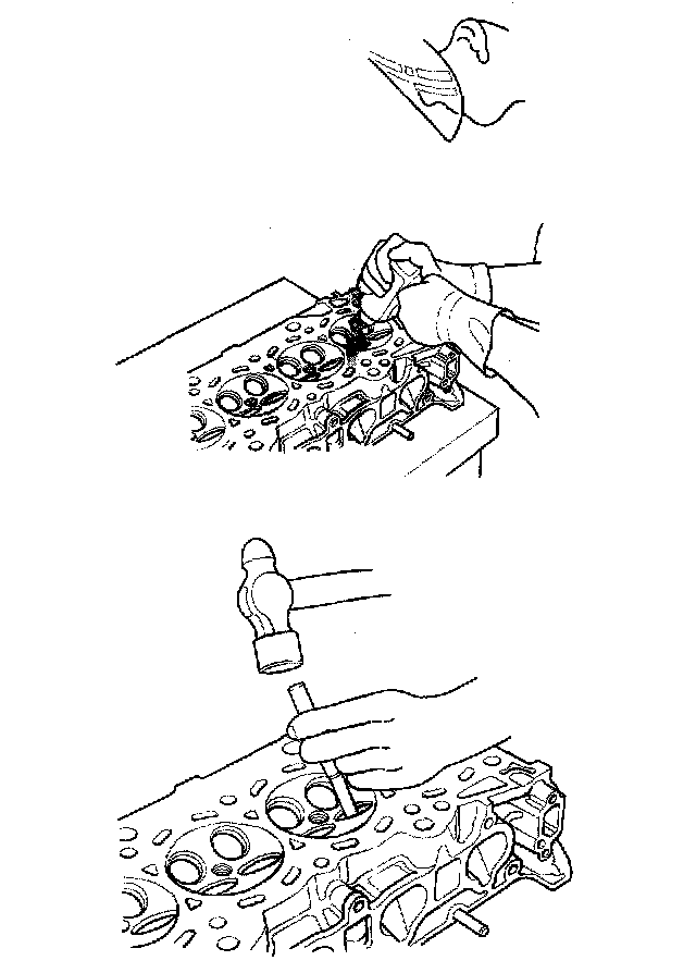 6. Turn the head over, and drive the guide out toward the camshaft side of the head.