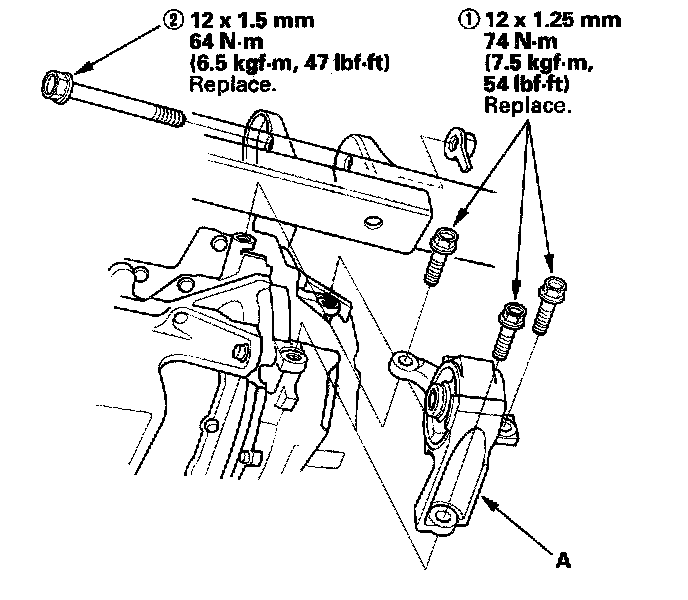 4. Install the front mount, then tighten the new front mount mounting bolts in the numbered sequence shown.