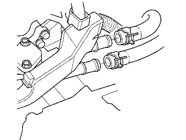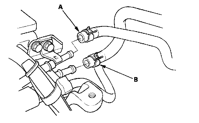 15. Remove the evaporative emission (EVAP) canister hose (A) and brake booster vacuum hose (B).