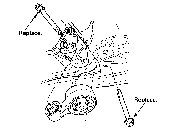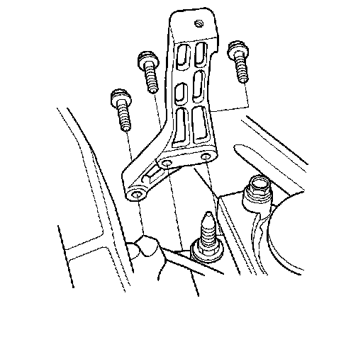 58. Remove the transmission mount bracket mounting bolt and nuts.
